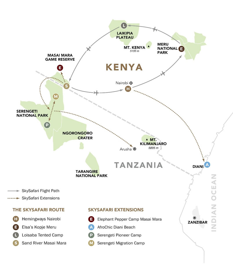 Your SkySafari Representative will welcome you upon arrival. You will be chauffeured to Jomo Kenyatta International Airport; before arriving there we will stop at one of Nairobi’s restaurants where dinner will be served. You will arrive at the airport in time for your outbound flight.